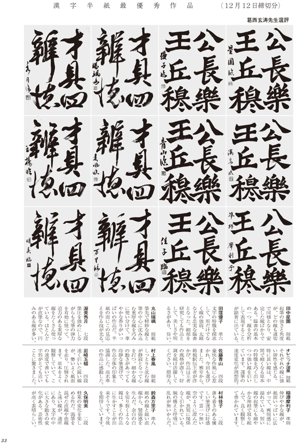 漢字半紙最優秀作品